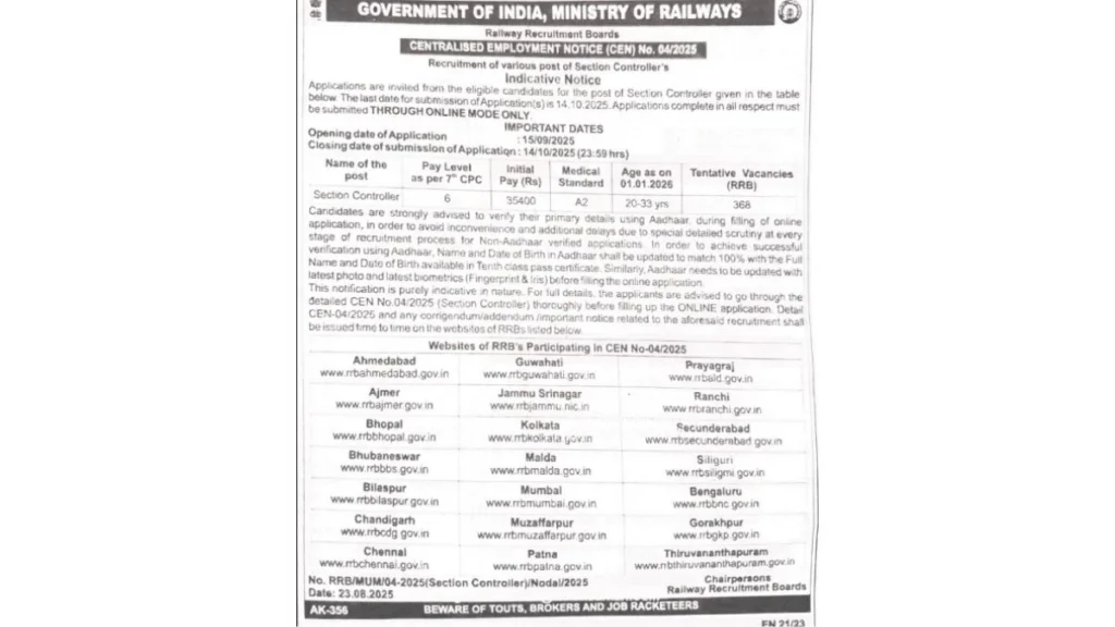 π Visit official site: rrbapply.gov.in (or respective RRB zone site).